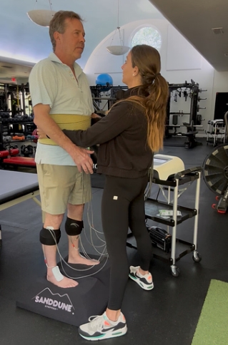 Here he is working one-on-one with our lead neuro PT, Laura, using the Neubie in conjunction with dynamic balance training to improve lower body strength, coordination, and gait. Through targeted nervous system activation, Tanner is making measurable progress towards standing and walking with greater stability.