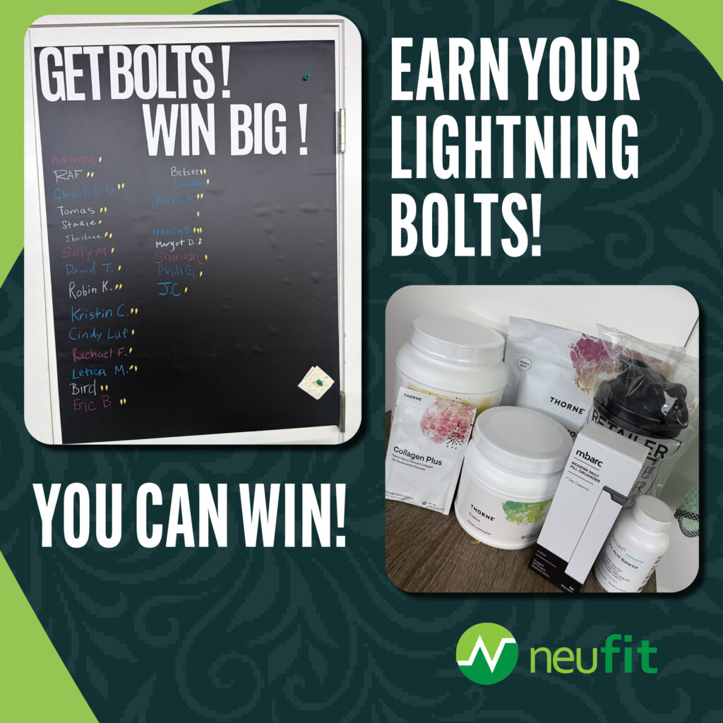 Every time you walk through our doors this month, you score a bolt toward our holiday contest. It counts for anything you book—rehab sessions, 1:1 training, add-ons, group classes, even partner workouts.